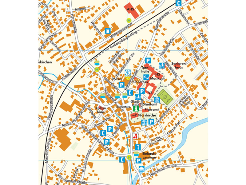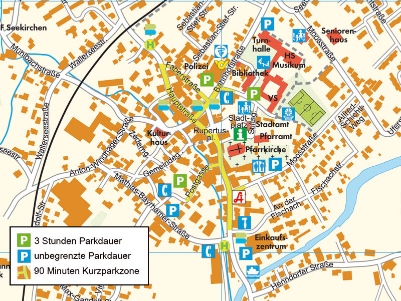 Dauerparkplätze stehen in der Moosstraße, der Mathias-Bayerhamer-Straße und in der Bahnhofstraße hinter der Mehrzweckhalle zur Verfügung.